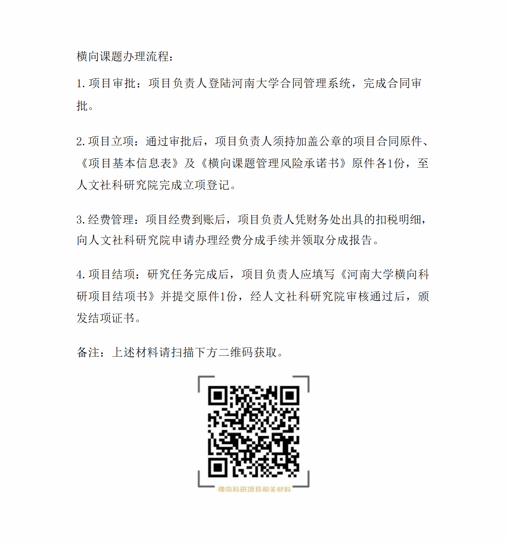 河南大学人文社科类横向项目流程