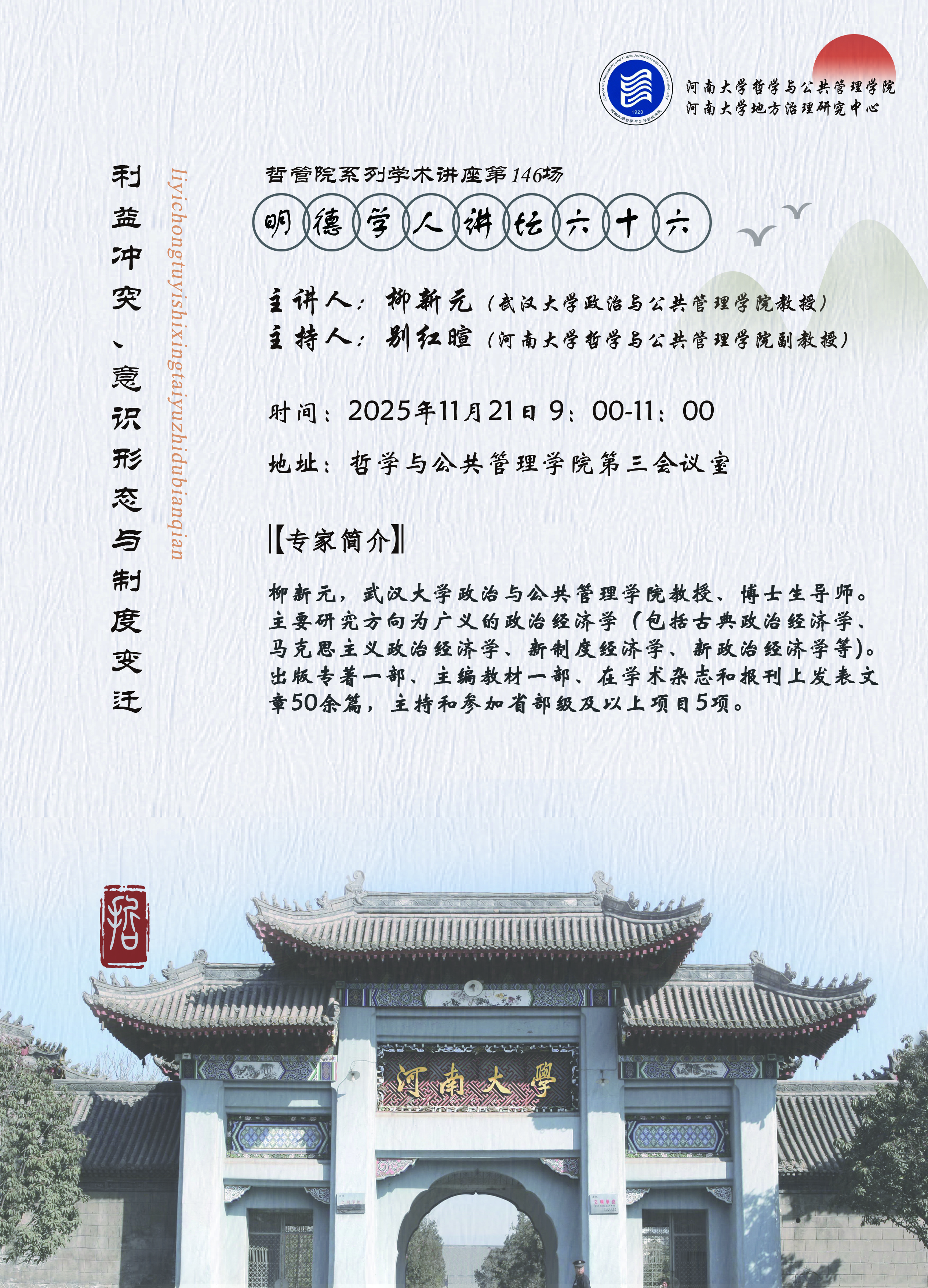 柳新元:利益冲突、意识形态与制度变迁(时间:11.21)