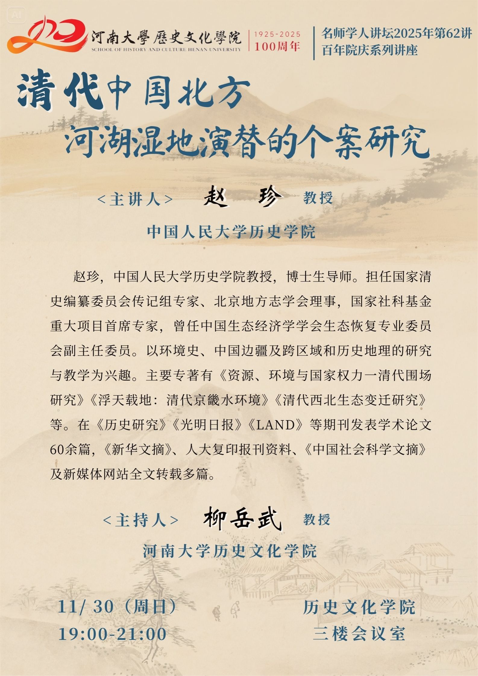 赵珍:清代中国北方河湖湿地演替的个案研究(时间:11.30)