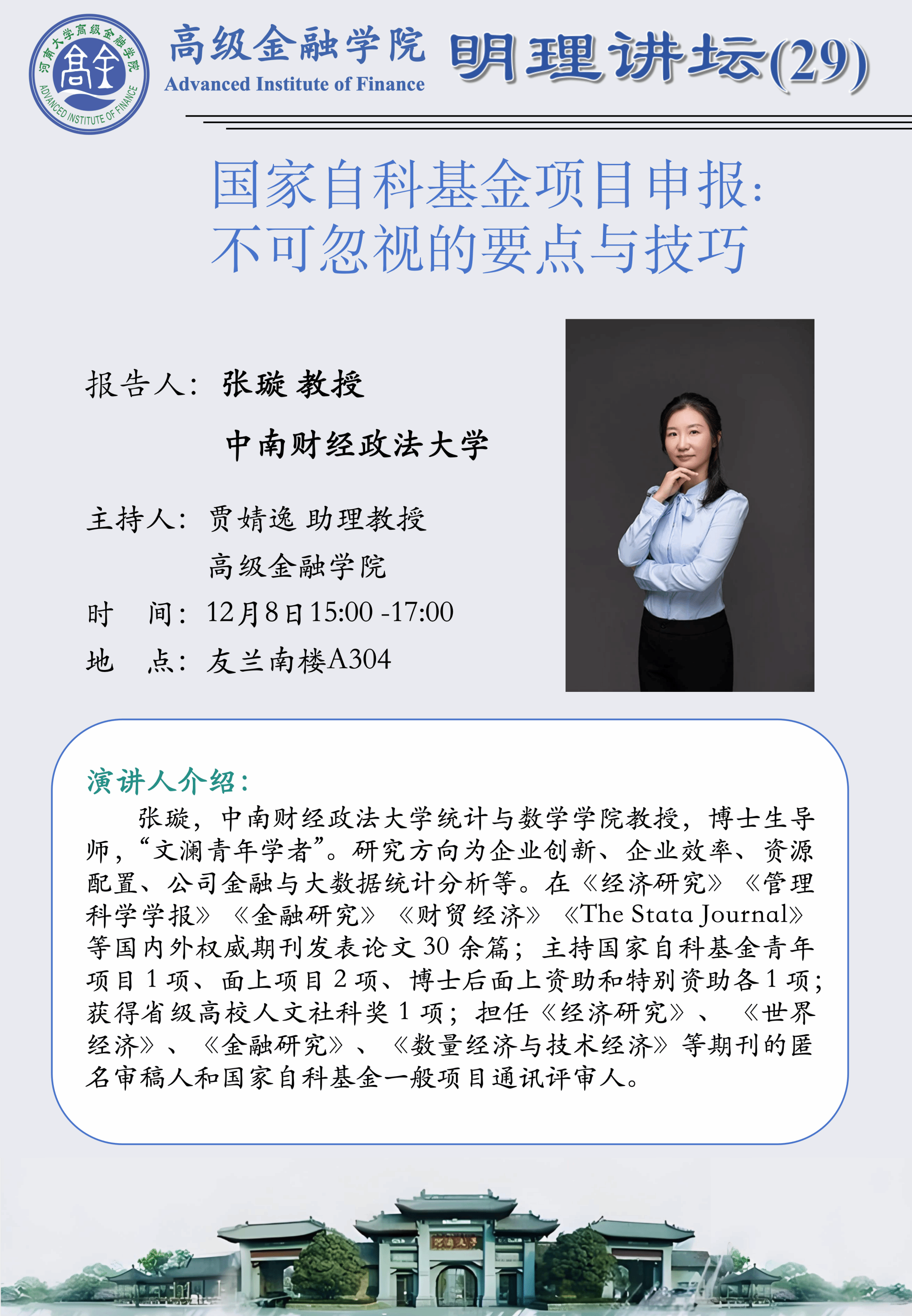 张璇:国家自科基金项目申报不可忽视的要点与技巧(时间:12.8)