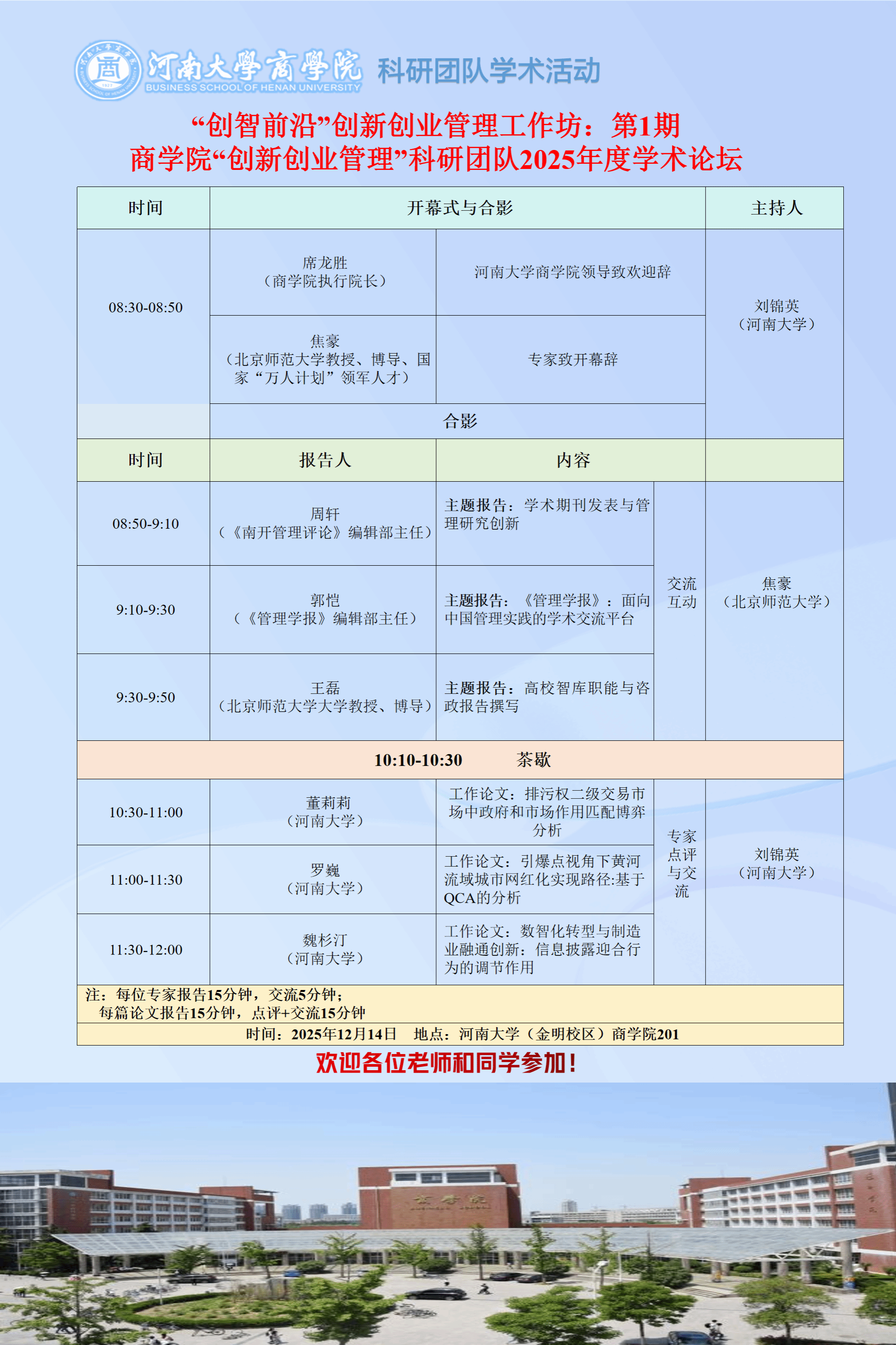 商学院“创新创业管理”科研团队2025年度学术论坛(时间:12.14)