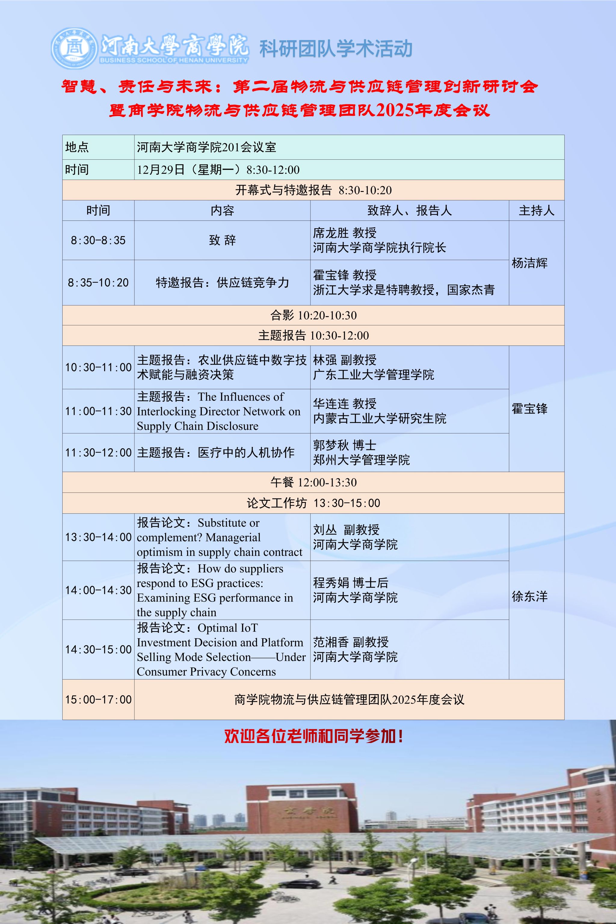 智慧、责任与未来:第二届物流与供应链管理创新研讨会暨商学院物流与供应链管理团队2025年度会议(时间:12.29))